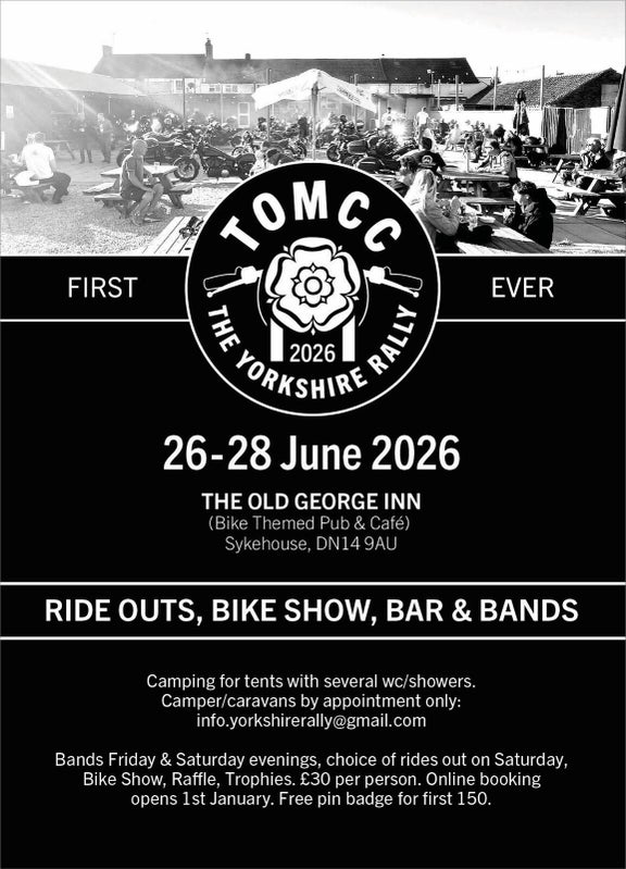 So planning is well underway now for the first ever Yorkshire Rally, jointly organised by the 3 Yorkshire branches of TOMCC -UK, it will be held the weekend of June 26th-28th in Sykehouse. Tickets will go on sale in January, but the rally is well worth putting in your diary now! Based in a well established bikers pub, serving a great selection of food and drink with a large campsite, bike show, special ride outs, live bands Friday and Saturday night, this promises to be a great weekend.